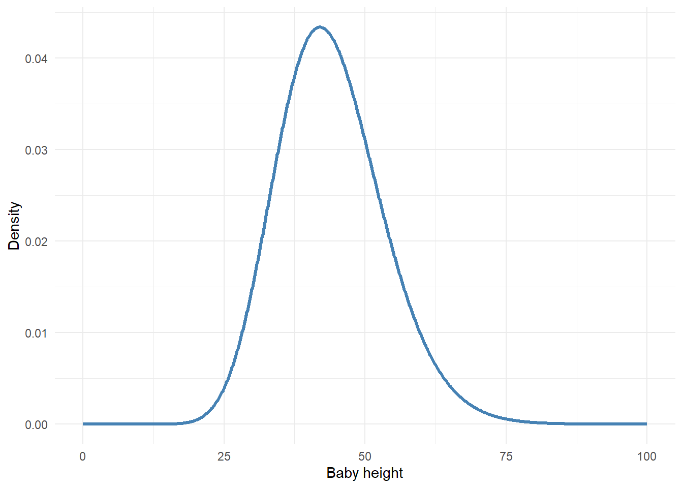 There’s another way I can create and refine my prior. By using existing literature. I can do a quick search online for any papers that have estimated new born height and growth rates in the past. If there are, that’s a gold mine for creating an informed prior! I won’t need to make educated guesses, I’ll have papers that tell me what a reasonable prior is.