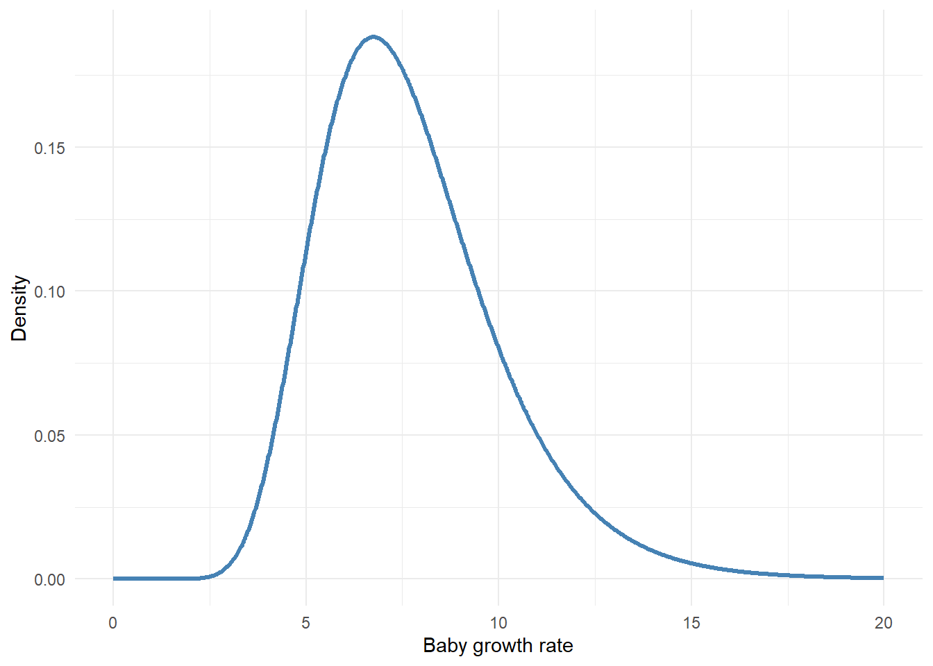 Here our slope (i.e. growth rate) prior uses a log-Normal distribution, specifically: \(LN(2,0.3)\).