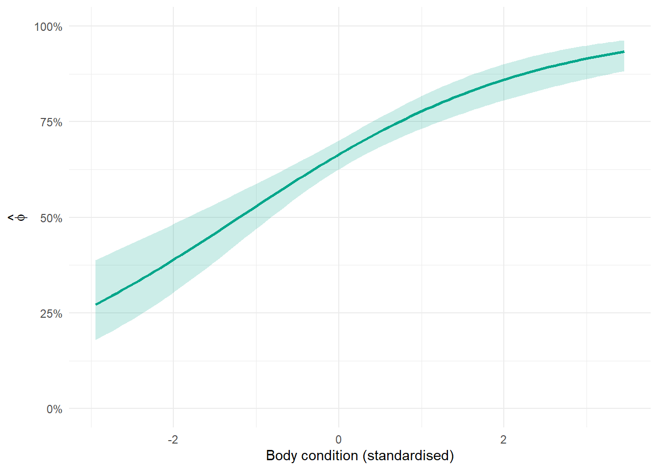 \(\beta_0\) is the survival intercept and \(\beta_1\) is the effect of body condition